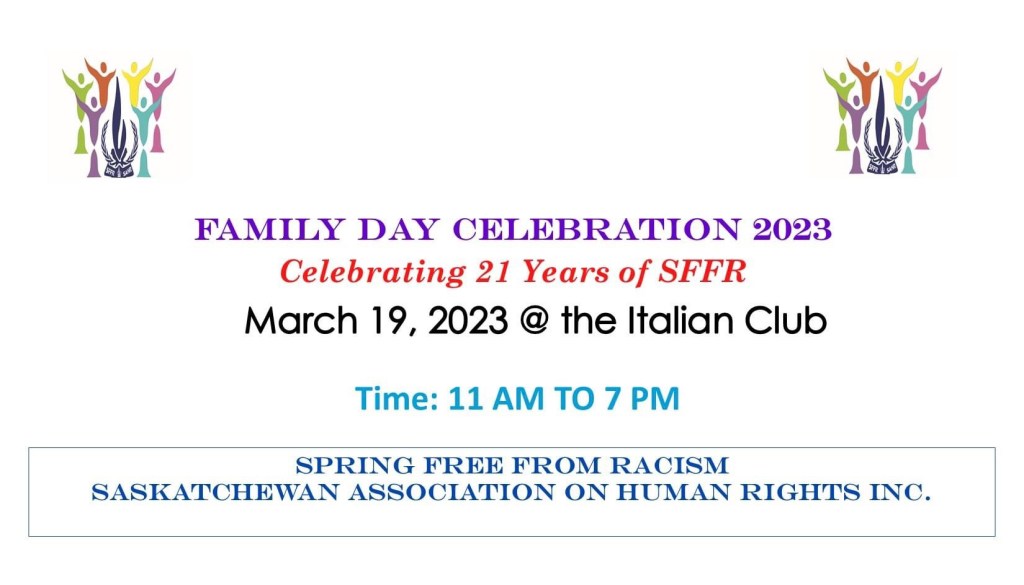This event is hosted by Spring Free From Racism and the Saskatchewan Association for Human Rights. We believe Saskatchewan needs to be dedicated to bringing about a more harmonious province that acknowledges its racial past, recognizes the pervasiveness of racism today, and is committed to a future in which all Saskatchewan people are treated equally and fairly.