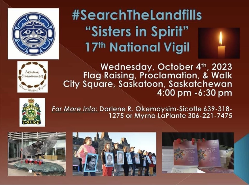 There will be Sisters in Spirit Vigil and events in Saskatchewan and across Canada.