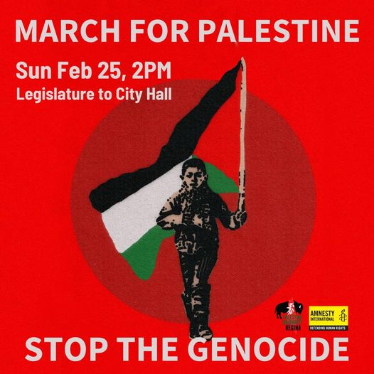 Sunday February 25: in Regina – Rally for Palestine